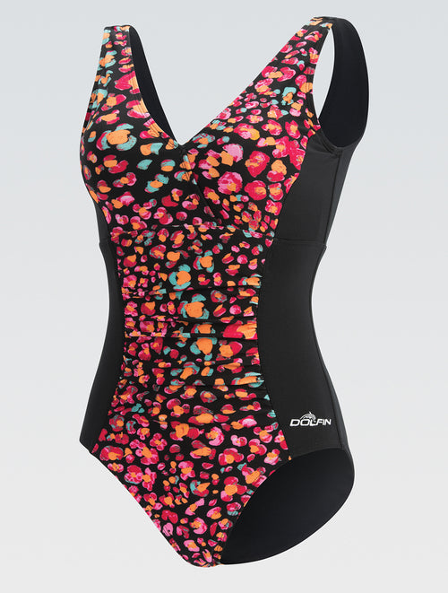 This sleek and stylish jaguar print is sure to make a splash wherever your swim or train!